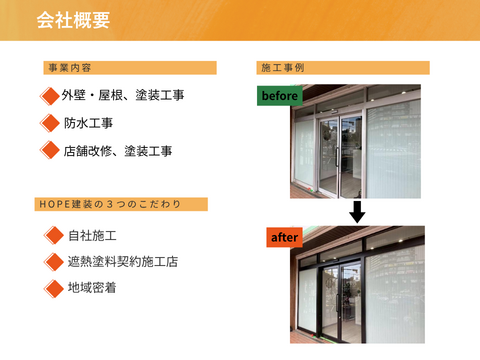 HOPE建装株式会社様は、お客様に「後悔させない」ということを会社のモットーにしていて、お仕事に誠意を持って取り組んでくださる会社様かと思います。